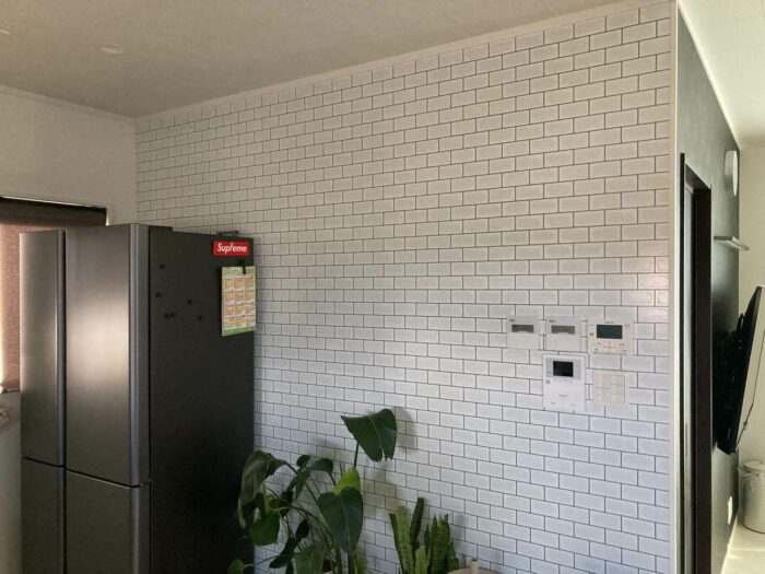 写真のように、クロスではありますが、タイル柄を選んでいただきリビングの印象がガラッと変わりました!