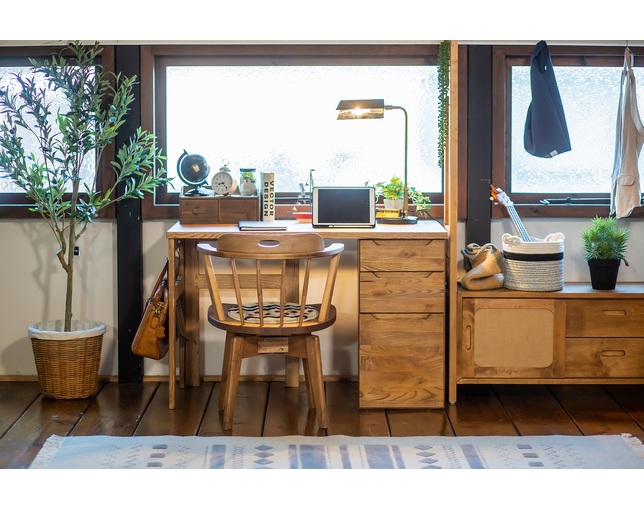 作業用デスクは、機能性を求めすぎてかっちりしすぎると空間のテイストやデザインを損なってしまいがちです。しかし、こちらのデスクは、機能性を最低限保ちながら、かわいらしく写真のように北欧風の家具にぴったりとマッチします。さらに、デスクの中でも比較的にお求めやすい金額なのおすすめポイントです。