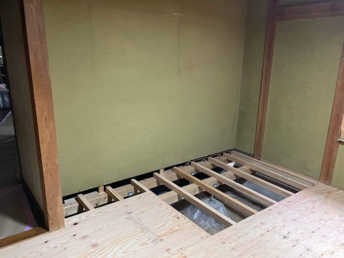 壁の部分もこれからベニヤを貼ってクロスにする予定なので
