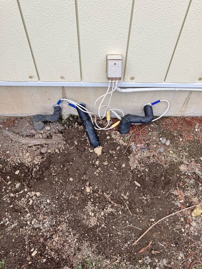 地面を潜っている配管からの漏水でしたので、該当箇所を掘って、修理をさせていただきました。