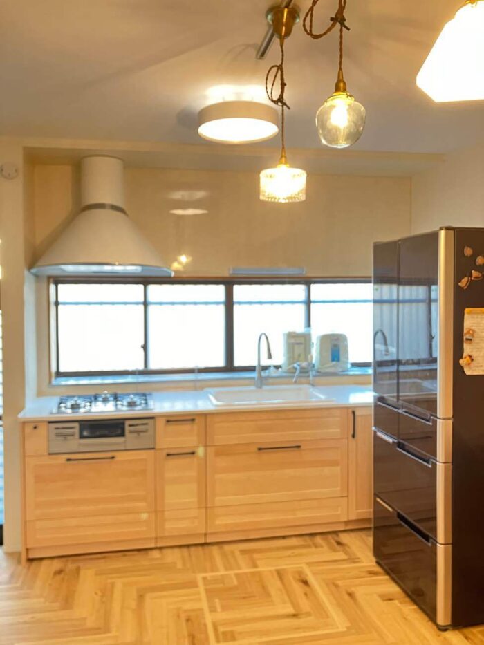 キッチンもオノヤSRに展示されているキッチンと同じメーカーなので、SRに似せて照明をつけてみました。