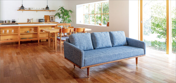 こちらのソファは脚が高く、背が低く設計されているため、お部屋の中央にレイアウトしても圧迫感を感じさせないように