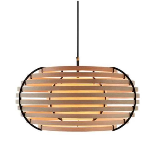 木製の材質と温かい光で部屋にやすらぎを与えてくれる照明となっています。