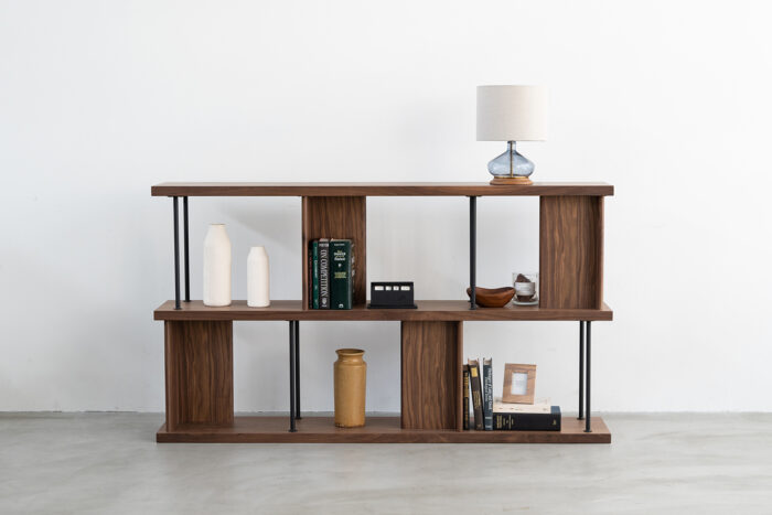 また、高さのある収納部は、花瓶や本も十分に収まるサイズ感となっており、両面使用可能なので間仕切りとしても使うなど、自由にレイアウトできます。