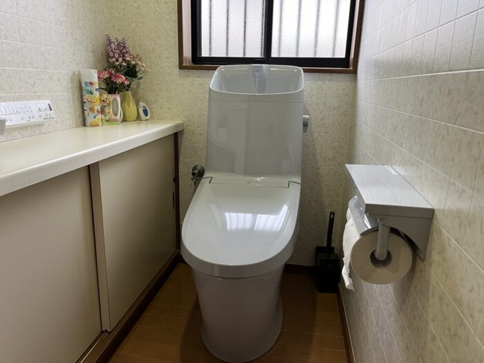 タンクレスのトイレから、タンク一体型のトイレへ交換させていただきました。