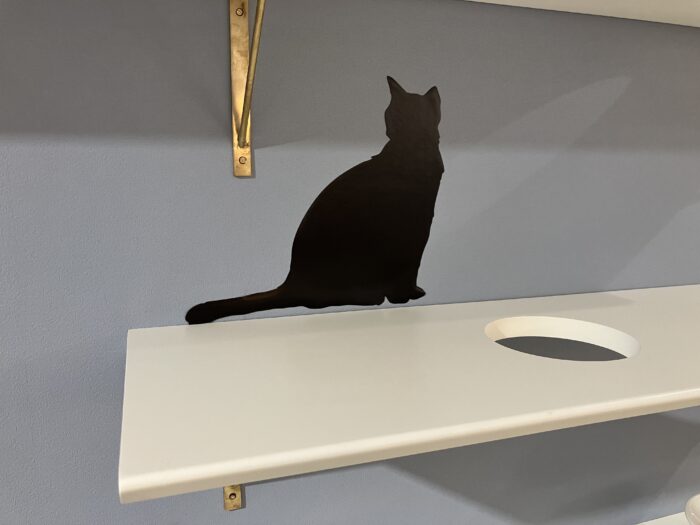 飾り棚のように見えるこちらの棚は猫ちゃんのキャットウォークになっており、天板はざらざらとした表面加工がされ、滑りにくい素材となっています。