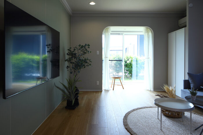 LDKの南側に物干しスペースを増築しました。サンルームやテラスを設置するのではなく、部屋のつながりを持たせながらも必要なスペースとして確保しています。