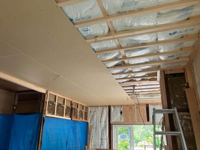 今まで入っていなかった、天井に断熱材をたっぷり入れました!