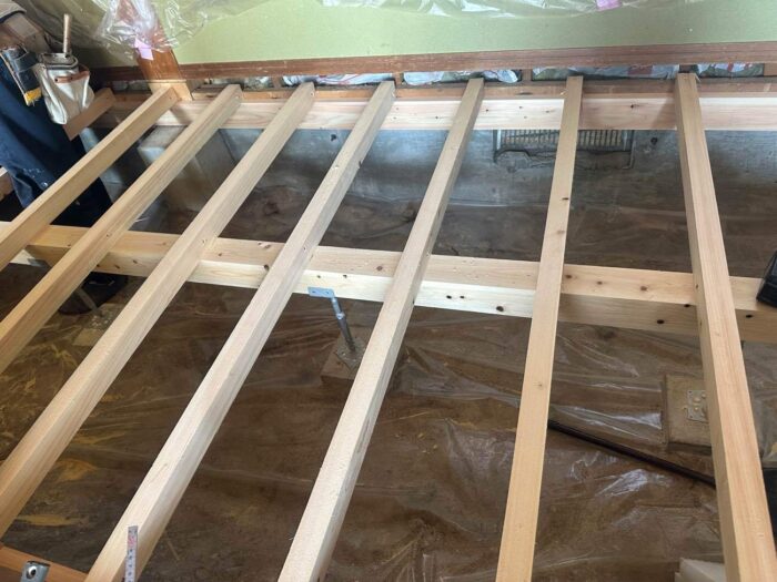 床を解体し、下地からやり替え、断熱材も新しく充填し床を作っていきます。