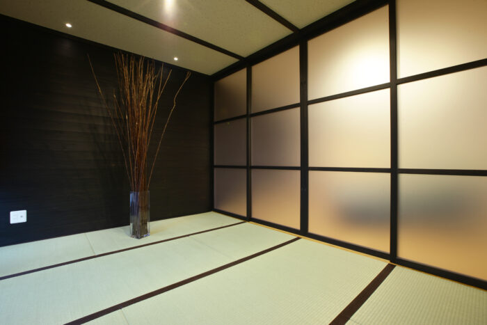 この写真のような表現になります。これに合わせて建具の枠や天井の付け張りなどを