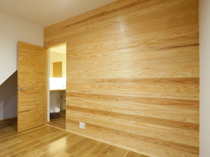 この写真のように、壁一面に合板を張って仕上げる場合もあります。