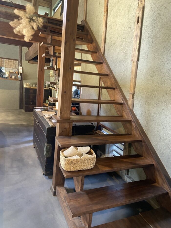 昔々の農家さんが住まわれていた古民家で、農機具などの名残がのこっておりました。躯体はそのまま残しつつ、既存の古き良き奥深さを残しながら、古風と現代風が混ざり合う落ち着いた雰囲気を演出しています。