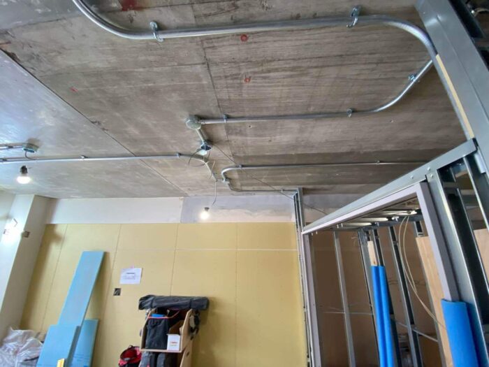 こちらの現場では塗装天井に、電気配管が表しになるように施工します。