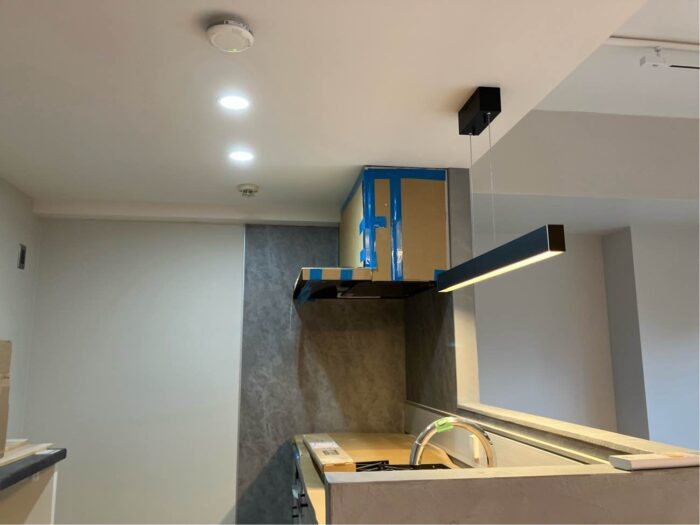 内装が仕上がると、照明などの電気機器を取り付けていきます。