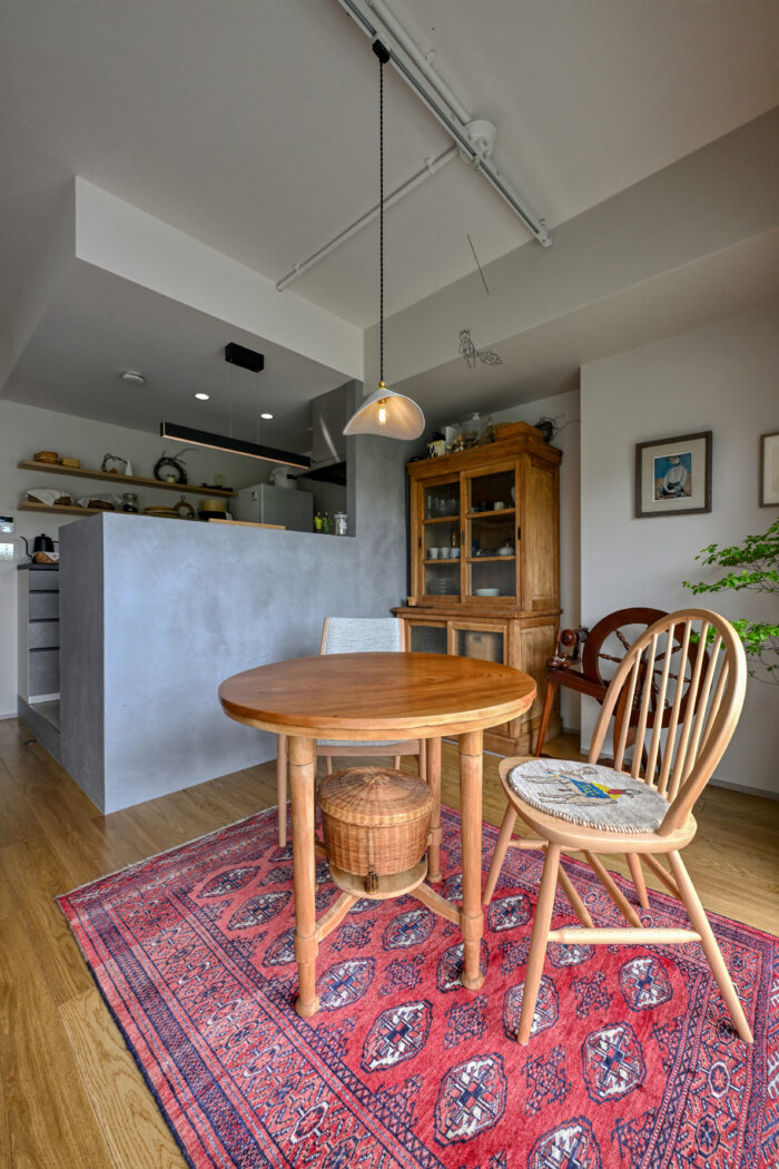 お客様がお持ちのアンティークの家具たちと、塗装天井、モールテックスの素材感がマッチしています・・・