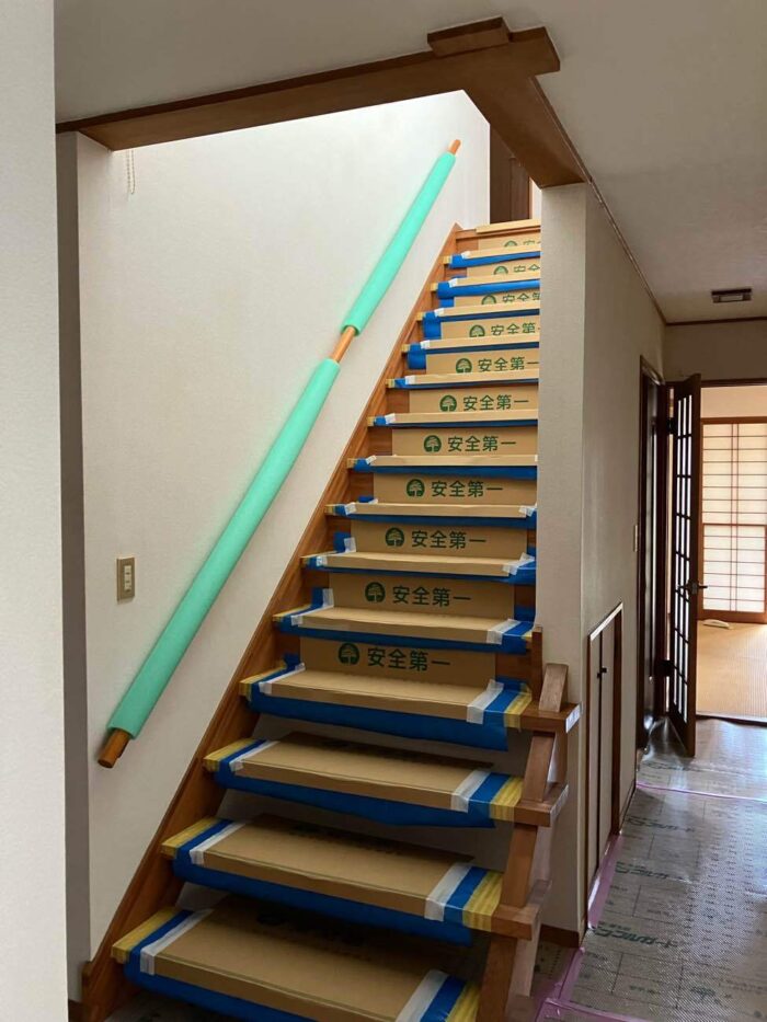 階段もこのように養生します。