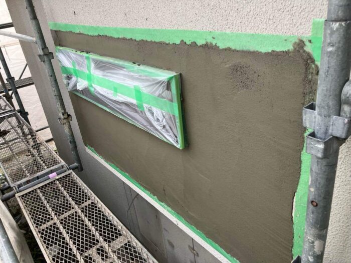 窓入替に伴いモルタル外壁を一部解体する必要がある為、モルタル補修を行います。