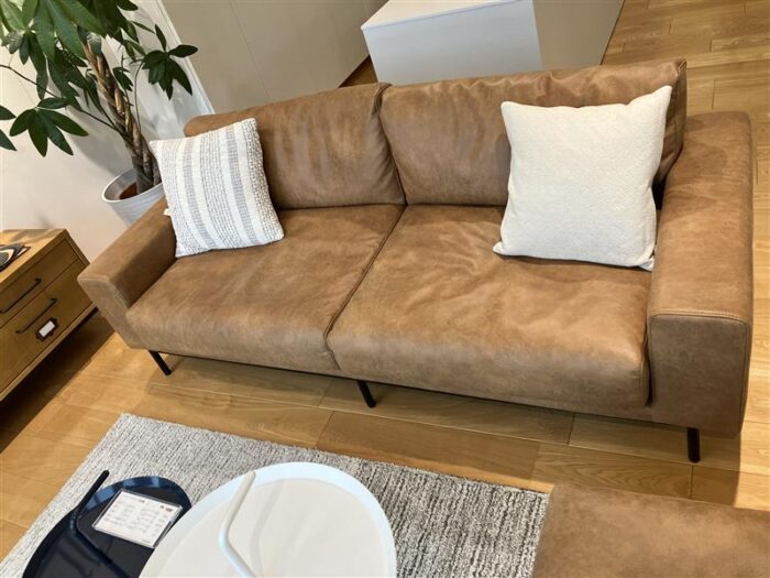 本革よりも扱いやすいので、おススメです。このソファも30%OFFで展示販売できるので、ぜひ見学にきてください。