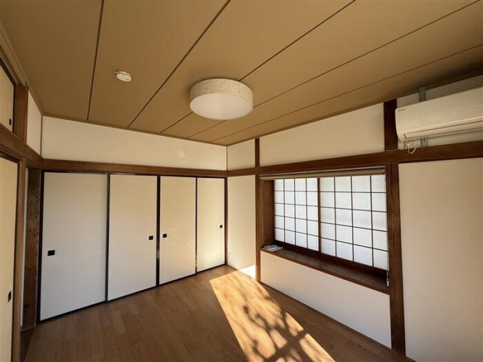 フローリング張替、クロス施工、天井塗装をして全体的に明るい雰囲気へと仕上がりました。