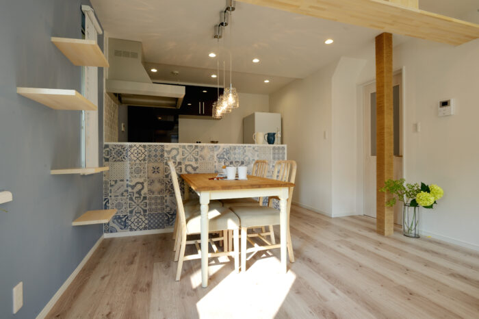 本日はキッチンの腰壁に素敵な模様のタイルを貼った事例です。
