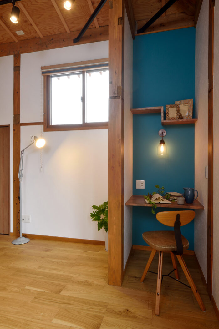 ワークスペースの施工事例第二弾の今回は、古民家の柱を利用して設置したワークスペースをご紹介。