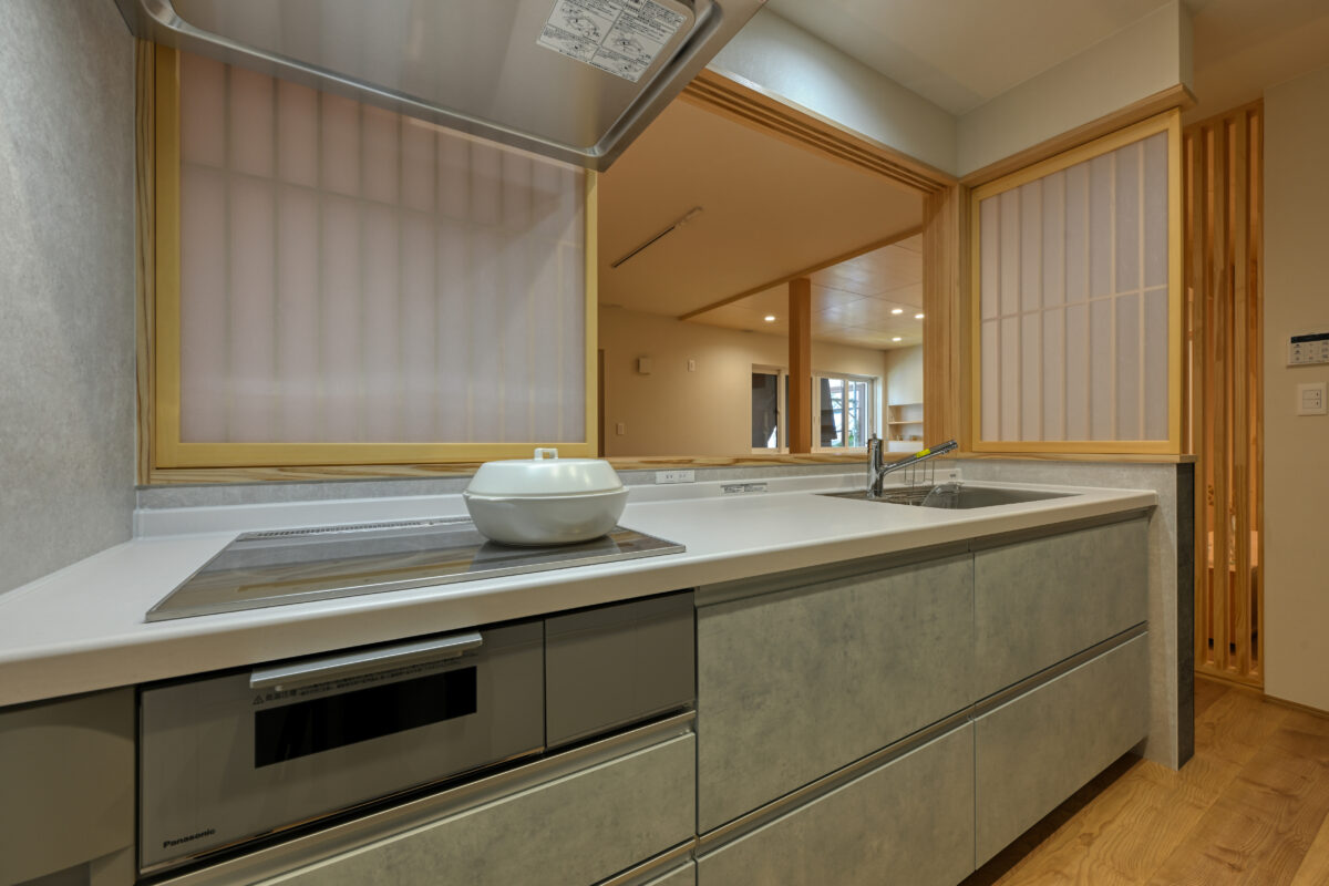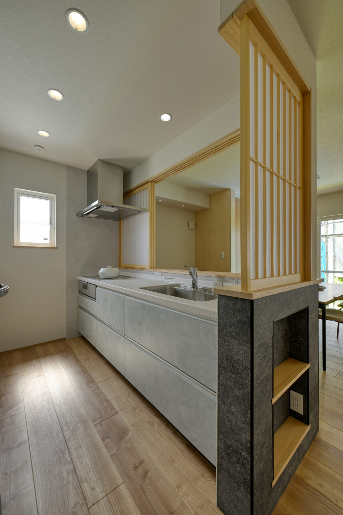 断熱性能を高めるとともに、住まい全体の動線を見直すことで、一年を通して快適に過ごせる空間へと生まれ変わりました。和の雰囲気は大切に残しながら現代的なデザインを取り入れ、畳がなくても和を感じられるLDKを実現しています。また、障子の開閉によって空間の表情が変わる設えは、新潟県にある「光の館」をイメージしたものです。木の温もりに包まれた、落ち着きのある心地よい住まいとなりました。