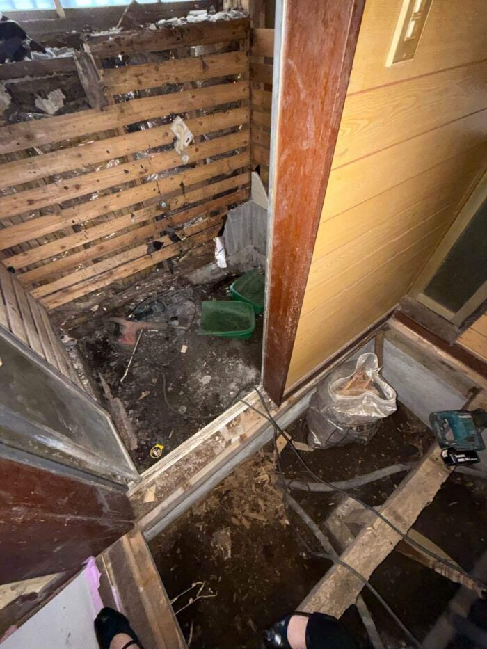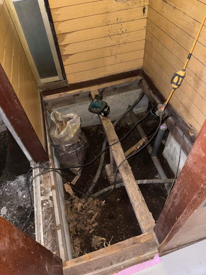 築年数35年前後のおうちで、洗面室の床がぶかぶかになってしまっていました。