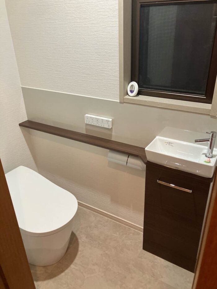 トイレの背面に収納スペースがある分手狭に感じているということでリフォームを任せていただきました。